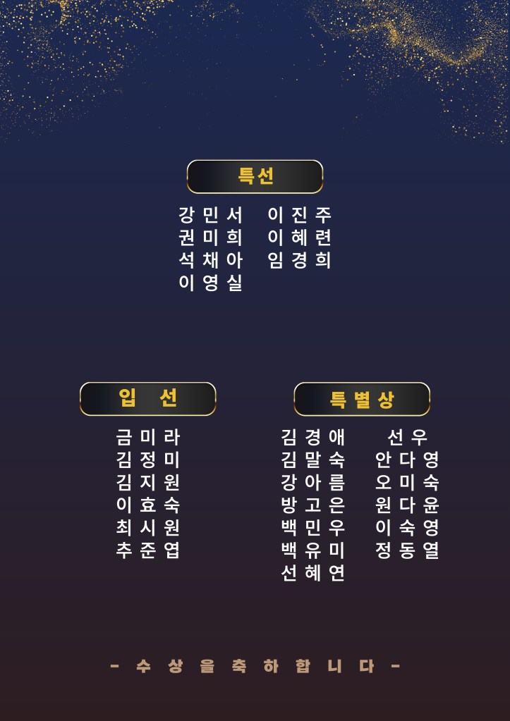 상장 수령 안내: 11월 11일 가평 쁘띠 프랑스 현장 방문이 어려운 경우, 12일 – 13일 서울 소재 익선아트센터에 오셔서 수령하셔야 합니다.
